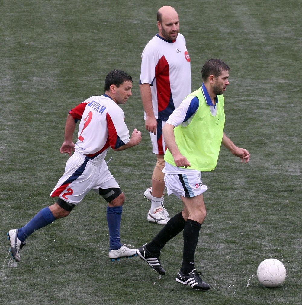 Санкт-Петербург. Международный футбольный турнир "Белые ночи". В игре Леонид БАРАЦ, Ростислав ХАИТ и лидер группы "Сплин" Александр ВАСИЛЬЕВ