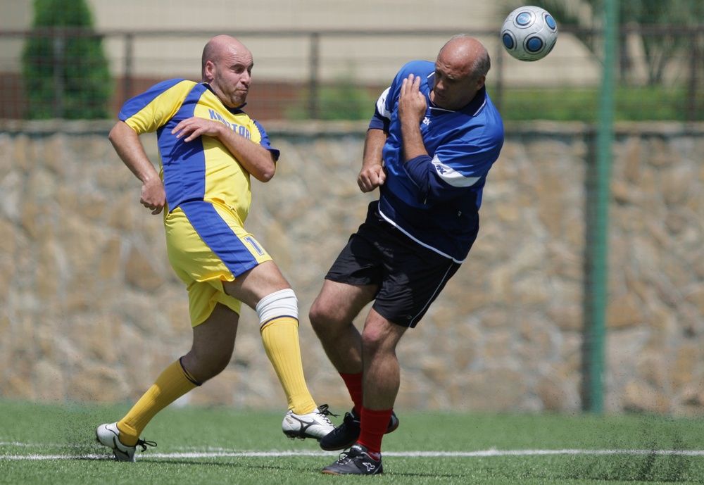 Сочи. Ростислав ХАИТ (слева) во время футбольного матча между сборной кинофестиваля "Кинотавр" и командой администрации столицы зимних Олимпийских игр-2014.