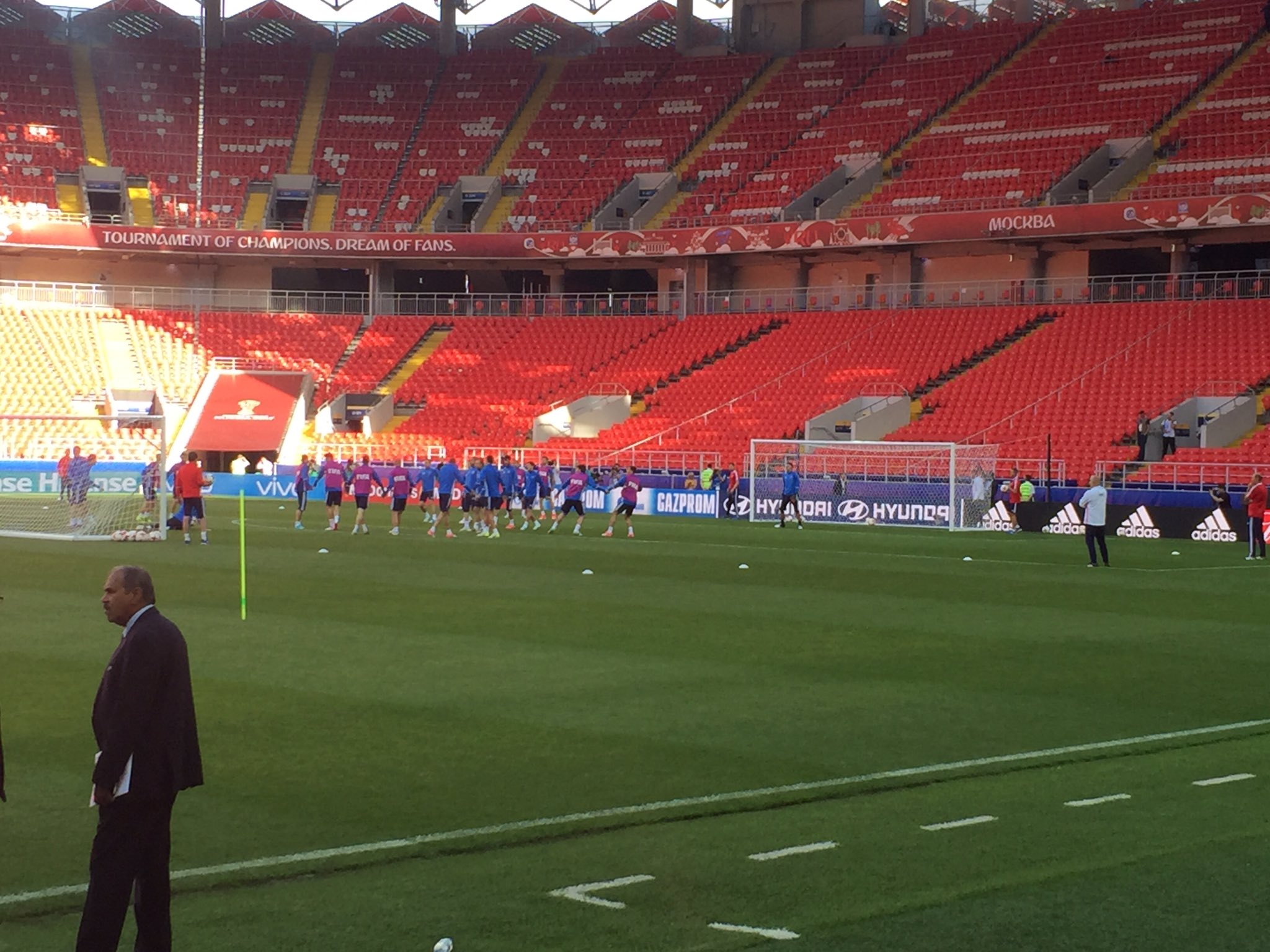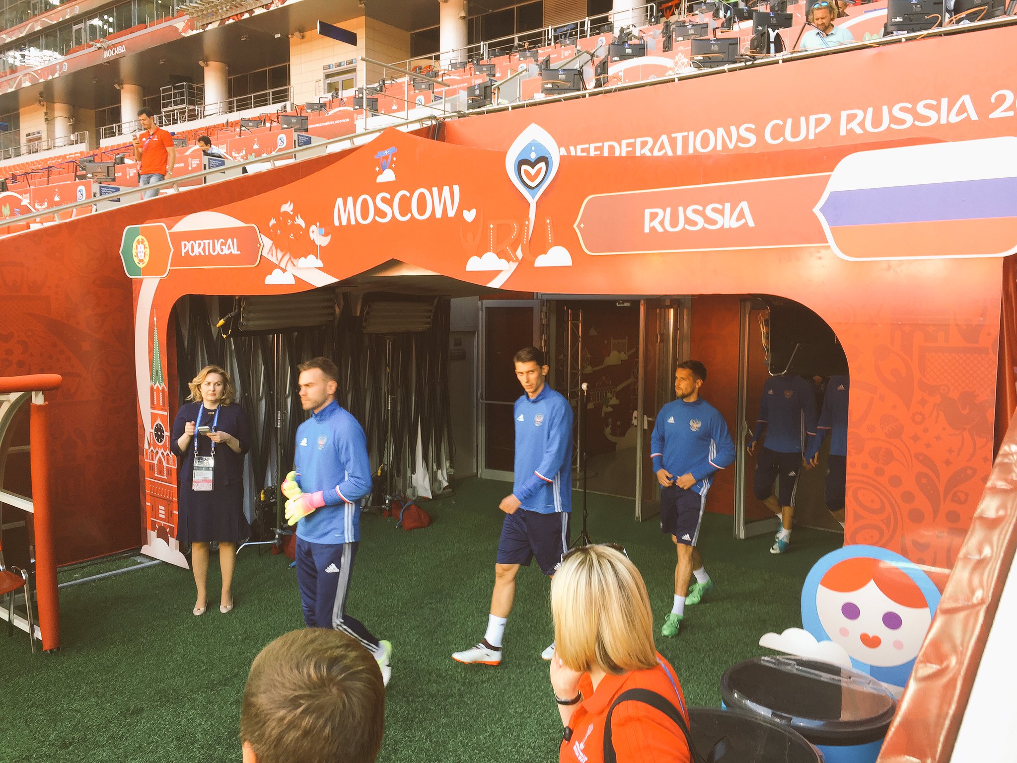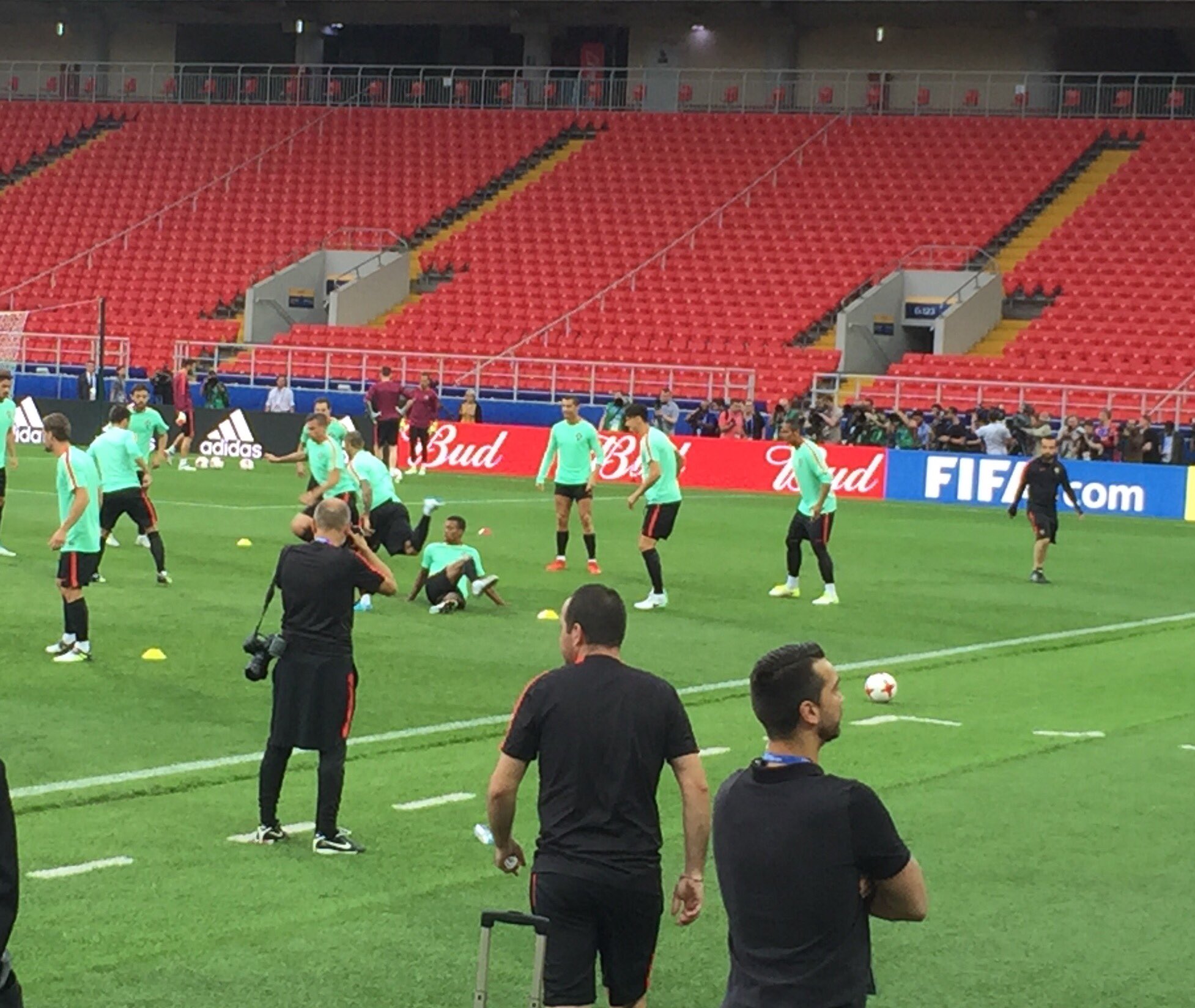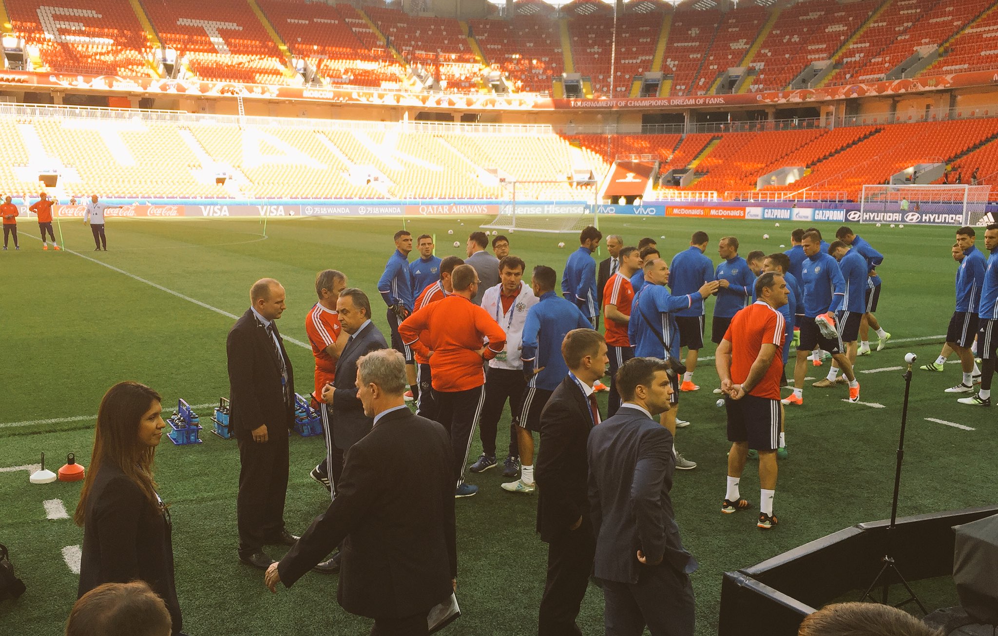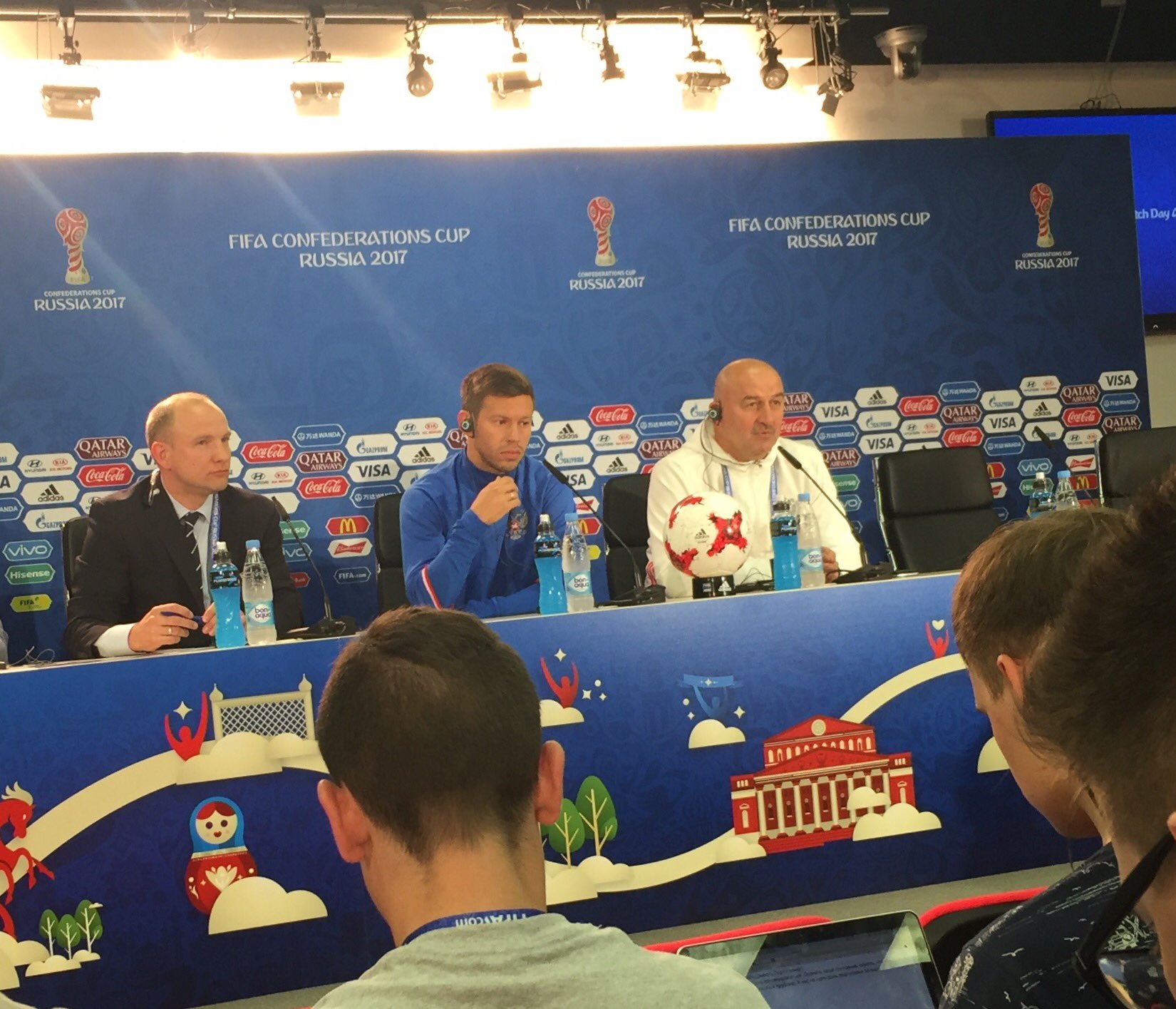 Онлайн о подготовке сборной России к завтрашнему матчу Кубка конфедераций со сборной Португалии.