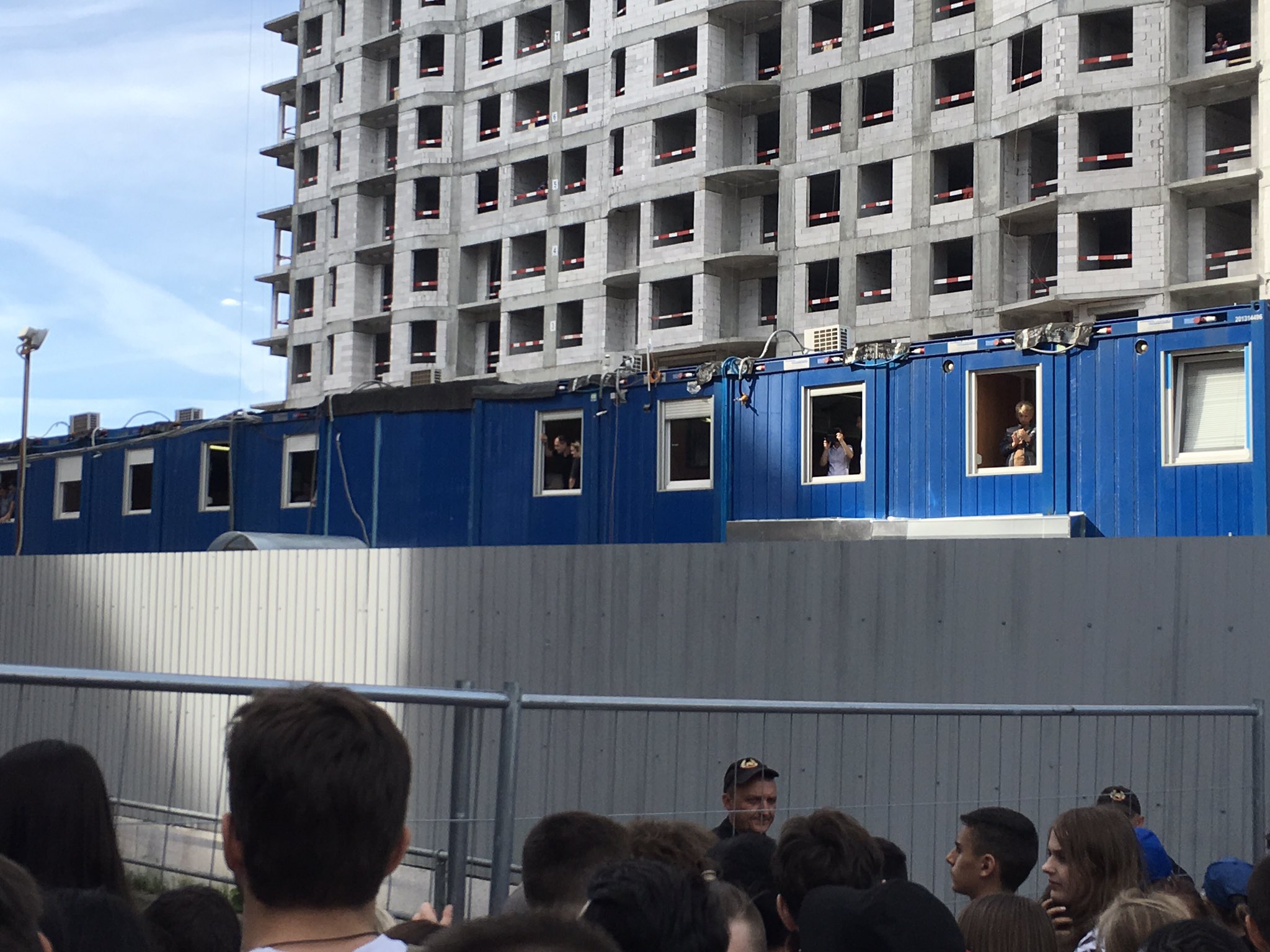 Работники близлежащей стройки тоже ждут Роналду. Главная звезда в столице!