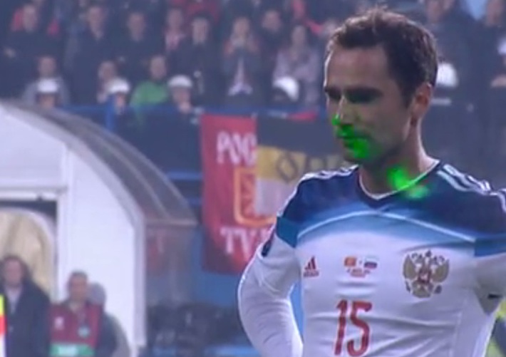 1.01. Россияне стараниями Александра Кокорина получают право на пенальти. И Роман Широков, в которого светят лазерной указкой, не переигрывает вратаря.