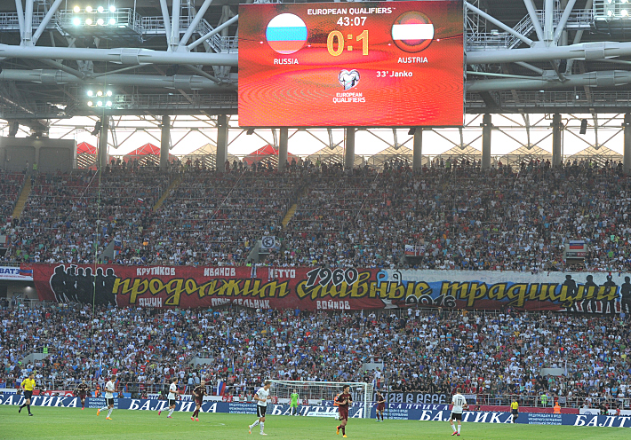 "Отбоя не было, поход продолжается", – такой традиционной для армии фразой-баннером фанаты встретили сборную, которой предстояло снять мини-проклятие "Открытие Арены" – ведь именно в Тушине сборная сыграла вничью с Молдавией. Неудачный результат с Австрией (то есть любой, кроме победы) вопрос о "фартовости" новой арены поставил бы со всей остротой. Хотя ясно же, что дело не в стадионе, а в самой сборной...