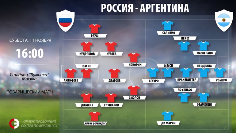 Сегодня состоится товарищеский матч между сборными России и Аргентины. Встреча в Москве начнется в 16.00.