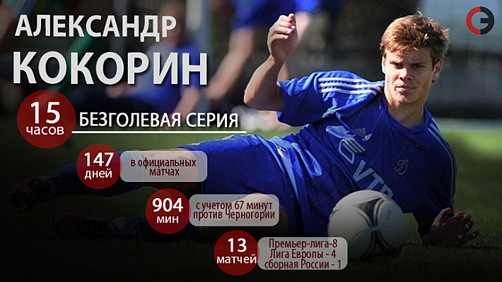 Автор 7 голов в чемпионате России-2014/15, форвард "Динамо" Александр Кокорин не может поразить ворота соперника уже 13 матчей. В последний раз нападающий сборной России отличился в игре с "Тереком", но только не в Грозном в это воскресенье, а в Химках 23 ноября 2014 года - 3:0.