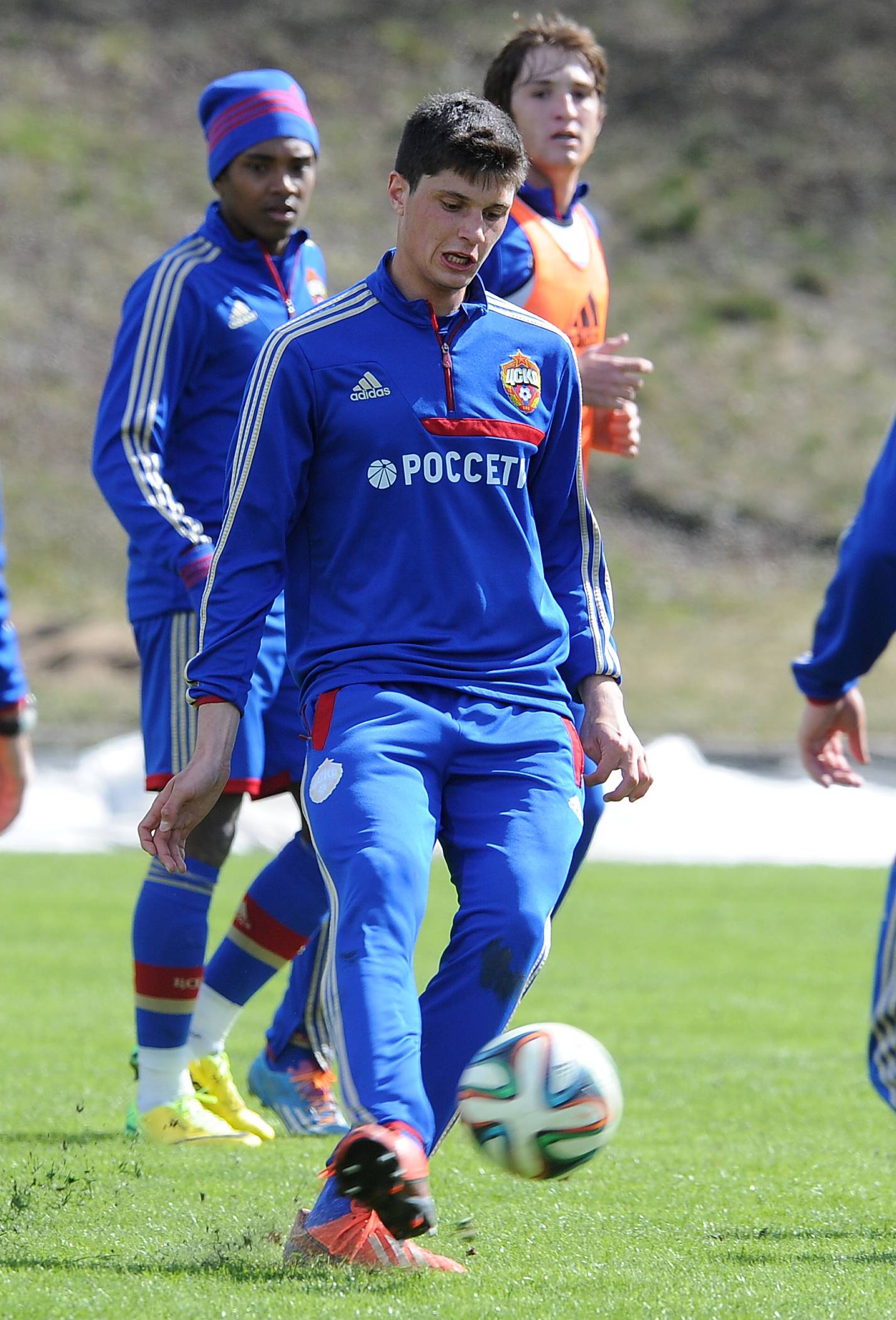 Однако в среду бригада "СЭ" действительно обнаружила на тренировке армейцев на стадионе "Октябрь", что на Живописной улице, прежде незнакомого игрока. Статный, худощавый, темноволосый – на первый взгляд напомнил популярного исполнителя Сергея Лазарева – Велков активно участвовал в занятии. Демонстрировал неплохие навыки отбора, верховой борьбы и даже дриблинга. Правда, показалось, парень не слишком быстр. Но, возможно, это обманчивое впечатление.
