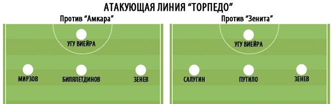 "Торпедо" ответило на это нацеленной на усиление атаки заменой потерявшегося на поле Зенева на Мирзова и, соответственно, переводом на правый фланг Салугина. Да и в целом было видно – в раздевалке команда получила приказ идти в наступление. С владением территорией у черно-белых наблюдался полный порядок, и Жевнов надолго остался без серьезной работы. Другое дело, что перевес "Торпедо" был обманчивым. Или, скорее, таким его делал "Зенит", защищавшийся организованно и без намека на суету. Разве что технарю Мирзову удалось прорваться в штрафную и нанести удар из неплохой позиции, однако на пути мяча оказался распластавшийся в подкате Нету.