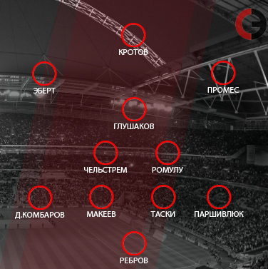 "Спартак" (Москва): 32. Ребров (к) – 4. Паршивлюк, 35. Таски, 34. Макеев (2. Инсаурральде, 59), 23. Комбаров – 24. Промес, 15. Ромулу, 8. Глушаков, 21. Чельстрем, 20. Эберт (10. Мовсисян, 72) – 57. Кротов (19. Хурадо, 79).