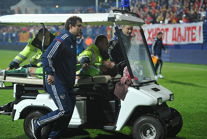 Единственное, что оставалось сделать, – подать протест в УЕФА на бесчинства черногорских болельщиков. Вот только непонятно, почему наша команда все-таки вышла на поле после того как Акинфеева увезли на "скорой". В 2010 году матч Италия – Сербия был прекращен на 7-й минуте из-за того, что из сербского сектора на поле просто полетели файеры, никому не нанеся вреда. В итоге Сербии было засчитано поражение, и один матч она провела без зрителей.