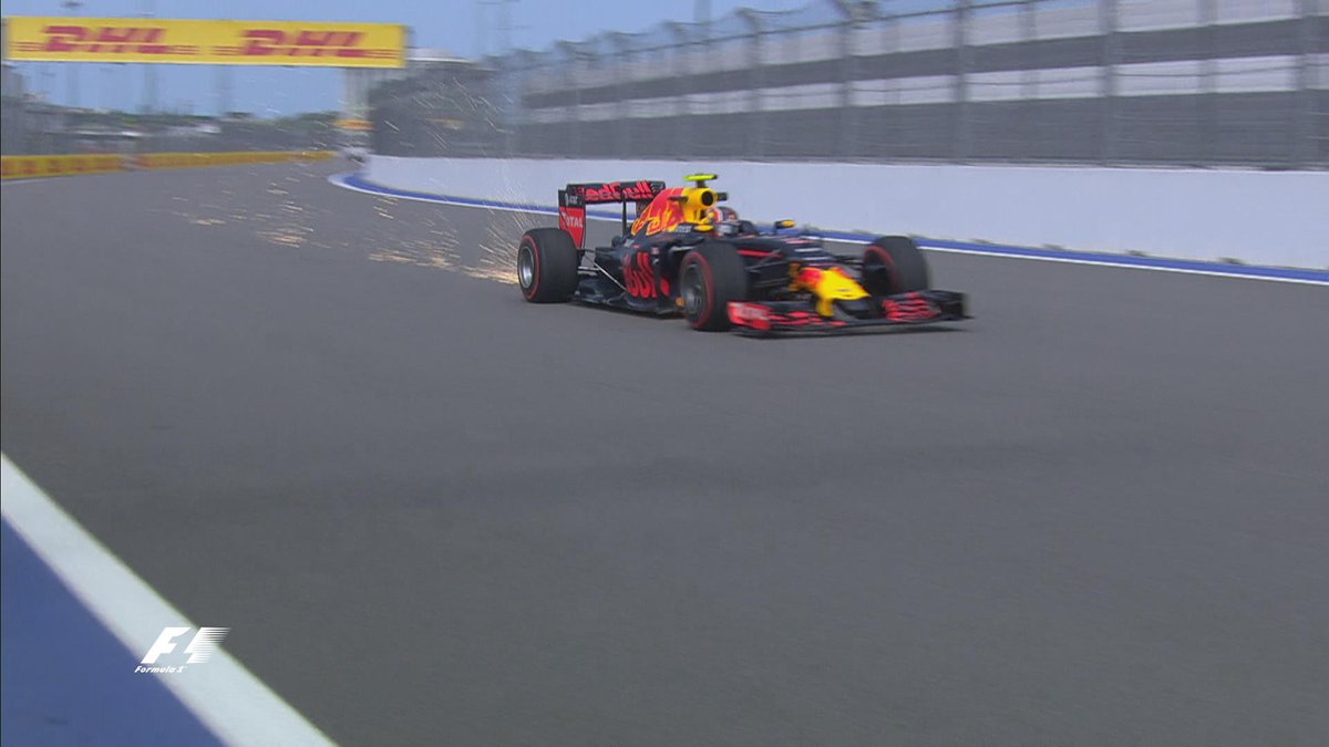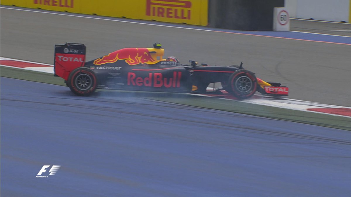 Квята разворачивает. Но это происходит на уже полностью использованном комплекте резины. Возвращается в боксы российский пилот "Ред Булла".