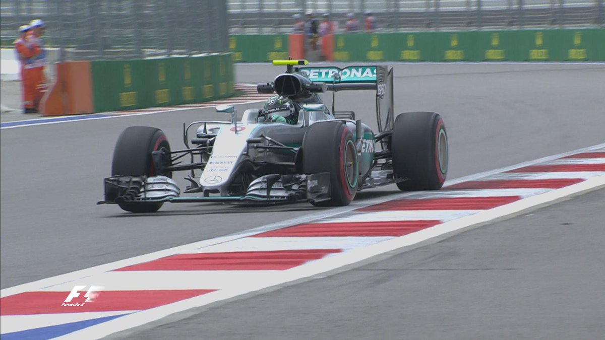 Самый быстрый пока что человек этого "Гран-при России" - Нико Росберг - вновь появляется на трассе. Улучшит ли он свои 1.38,642?