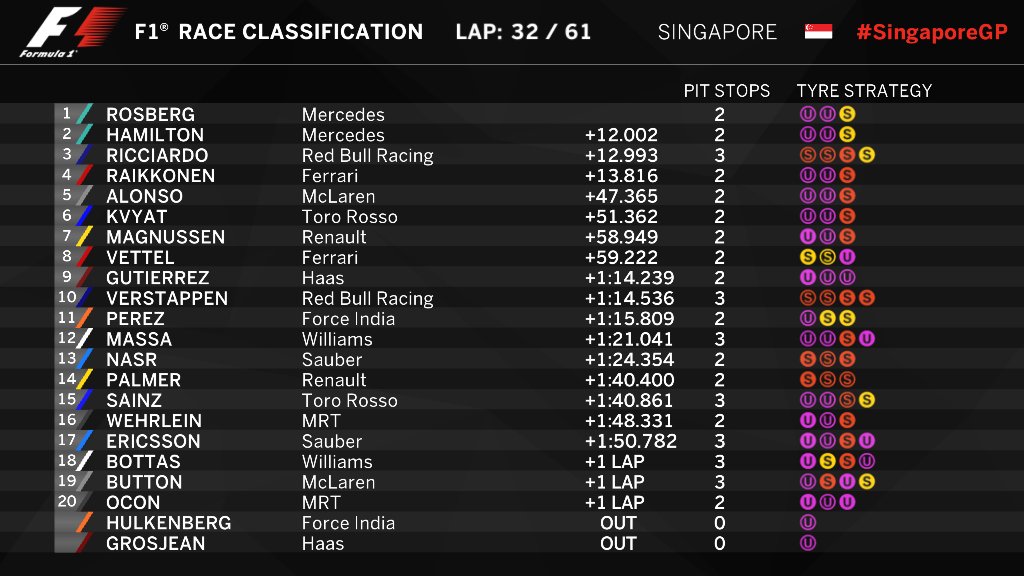 В традицию входит у меня снова смотреть гонки в прямом эфире и вторую гонку подряд я разочарован меньше, чем в среднем за последние гонок 40-50. В ГП Сингапура и без машины безопасности было на что посмотреть. Стартовый выезд Майландера не в счет - он не внес каких бы то ни было изменений в ход гонки. Кстати, вообще не понимаю зачем он нужен - виртуального вполне достаточно в ЛЮБОЙ ситуации, т.к. система работает на ура, особенно в начале гонки. Уволить Майландера!!! *****************************************************************************************************************************************А если серьезно, гонка порадовала своим неординарным течением. Неожиданно быстра была Торо Россо. Если подумать, где бы они были, не метнись они в конце прошлого сезона на мотор Феррари... Вчера я призадумался, так у кого все-таки лучшее шасси в чемпионате? Раньше я думал Макларен или Ред Булл, теперь уже и не знаю. Феррари прошлого года уступает мотору рено порядка 80 л.с. - пропасть. Хонде уступает чуть меньше - 50 л.с (правда сами японцы говорят, что на уровне Феррари уже нынешнего посола, но я им не верю). При этом у неповрежденной Торы Россо (будем объективны, Сайнс не в счет) темп был хорош, причем я смело утверждаю, что на чистой трассе он был не много ни мало в шестерке самых быстрых машин, выпадая из этой шестерки временами, когда утыкался в Массу без возможности обогнать или Переса, либо когда мариновали 2-3 круга перед последним пит-стопом. ************************************************************************************************************************************** Жаль, что таких трасс в календаре всего 3)) Удивлен, что Риккьярдо в концовке не опередил Росберга - помешали Масса и Гуттьерес, в общей сложности при их обгоне Дэн потерял около 3 с половиной секунд, достаточно взглянуть на его время на тех двух кругах и время до и после. Жалко, что их догнали на круг - этот факт лишил нас атаки в борьбе за победу на последнем круге гонки - то, от чего никто бы ни отказался, даже если он болеет за Росберга (а такие вообще есть???). Но это была бы вишенка на и так неплохом торте. **************************************************************************************************************************************И еще. Господа, и дама, я все-таки призываю вас к объективности. Ну где вы в радиопереговорах услышали скулежь от Ферстаппена. По-моему скулежь это когда мы слышим что-то вроде "это что за огурец на трассе" или "уберите этого чертового Переса с моей дороги". Все, что я услышал в трансляции в переговорах Макса, так это "ну же, ребята!" Наверное изначально это была фраза "ну-же, ребята, уберите его с моей дороги!!!". Видимо, вы как то так рассуждаете. Как мне показалось, эта фраза не была вообще адресована мостику, это было скорее раздосадованное восклицание от того, что гонка уходит. И она ушла. Вообще Макс последние гонки как то не тянет на фоне Дэна. Дэн вернул себе форму образца 2014 года, когда он в одну калитку уделал, О, БОЖЕ, САМОГО ЧЕТЫРЕХКРАТНОГО ФЕТТЕЛЯ!!! ))) После Сильверстоуна Макс проиграл в чемпионате напарнику 40 очков и выпал из претендентов на 3 место в чемпионате, которого ему так хотелось. Если уж идти по стопам Шумахера, то во втором своем сезоне он финишировал 3, к слову сказать. Максу теперь это вряд ли удастся, хотя при нынешней системе начисления очков все возможно. Поклонники Макса Ферстаппена можете закидать меня ссаными тряпкамим, но сейчас он на фоне Дена смотрится ничуть не лучше, чем Квят в первой половине прошлого года. Он упу
