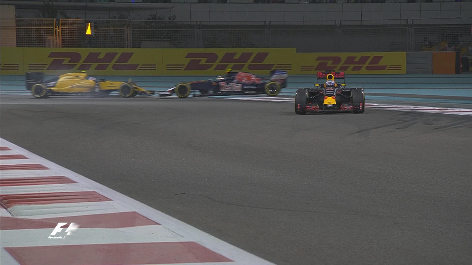 "Я всего лишь хочу выиграть эту гонку..." - нагло врал по радио тёмно-коричневый кусок ..... , попутно посматривая в зеркала заднего вида в надежде, что Ферстаппен вынесет с трассы Росберга.___________ Справедливость всё-таки восторжествовала и чемпионат выиграл Росберг, который достоин первого титула больше, чем Хэмильтон четвёртого. Причём Нико реализовал единственный шанс , если бы он не выиграл чемпионат в этом году, то не стал бы чемпионом никогда, поскольку в следующем году новый регламент и вряд ли доминирование Мерседеса будет таким же, да не факт, что будет оно вообще. Абсолютно непонятно, какого чёрта Рэд Булл снова запорол гонку Риккьярдо бредовой идеей стартовать на суперсофте и перейти на ту же тактику, что и стартовавшие на ультрасофте. Тем более, что скорость была, Риккьярдо перед пит-стопом показал лучший круг гонки, а соперники переходили на софт, который не был быстрее слегка изношенного суперсофта Даниеля. Ферстаппен на правильной тактике финишировал впритык к лидерам даже после разворота, а представьте, где был бы Риккьярдо, которому не пришлось прорываться через весь пелетон.