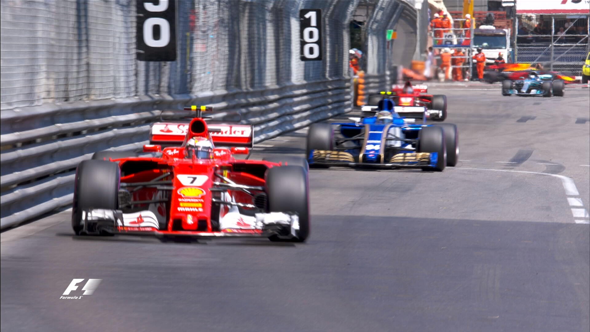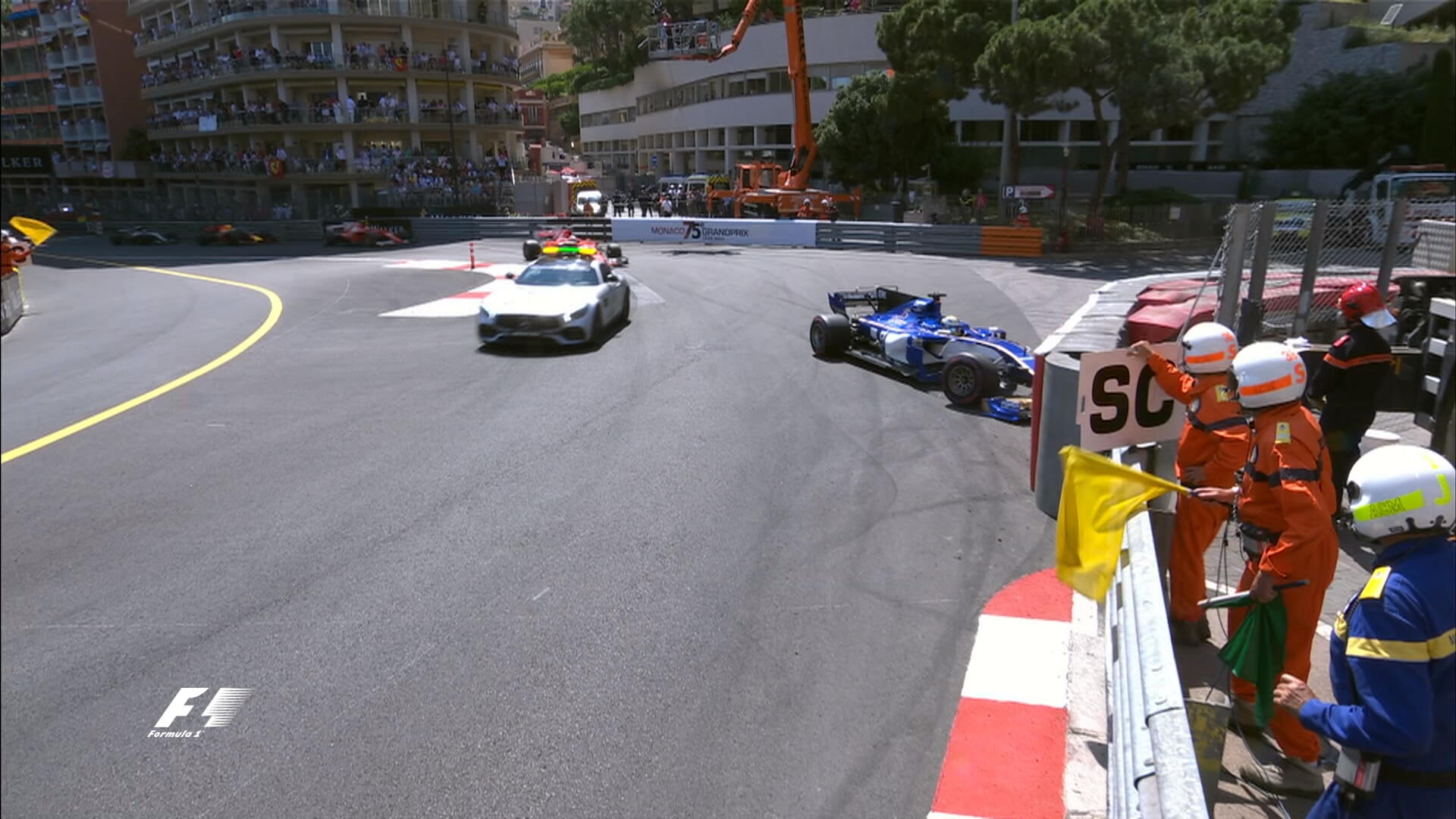 67-й круг: Желтые флаги! Вандорн столкнулся с Пересом и въехал в тот же отбойник, что и Эрикссон.