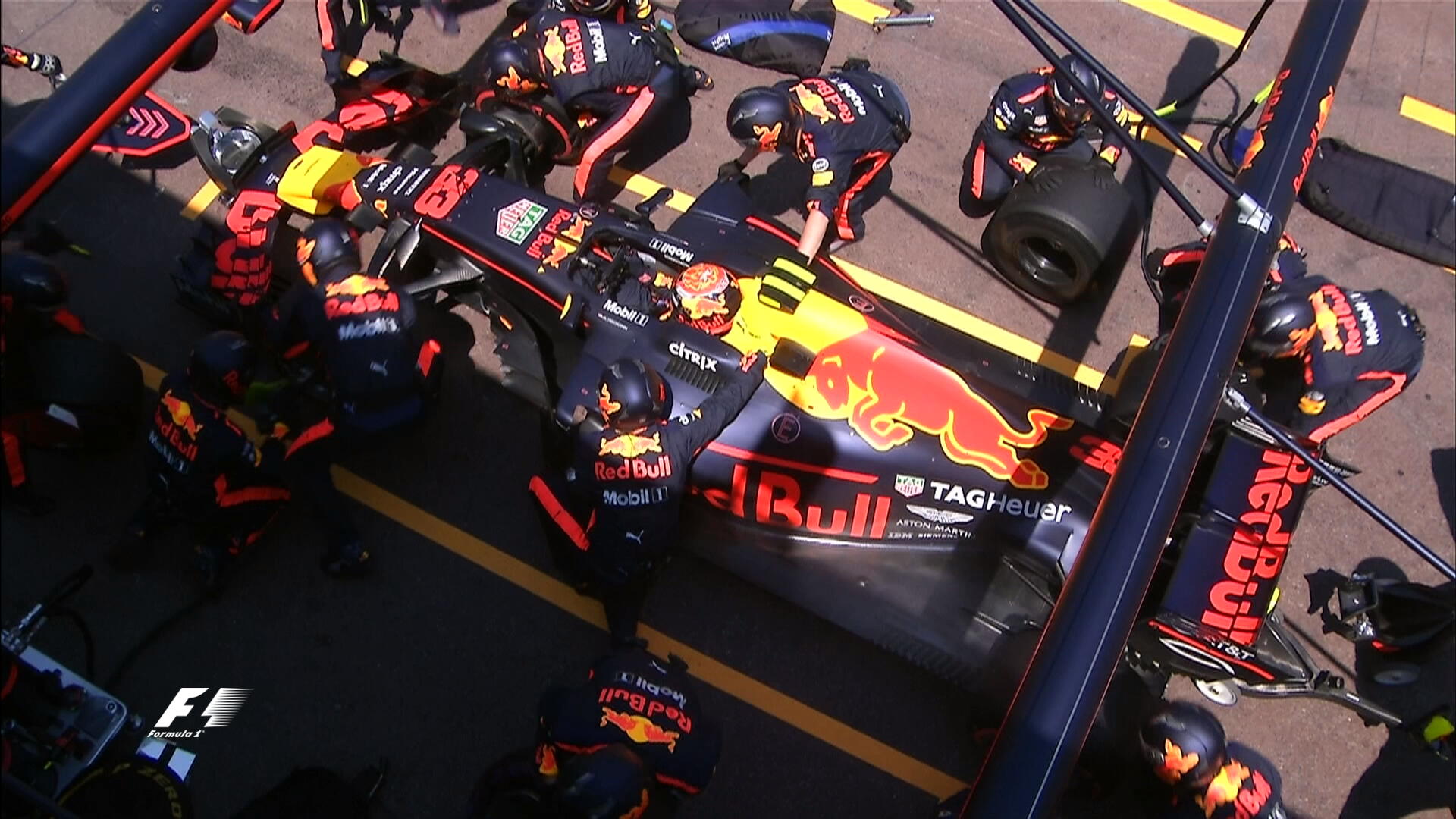 33-й круг: Ферстаппен заезжает на пит-стоп. Был четвертым, стал шестым.