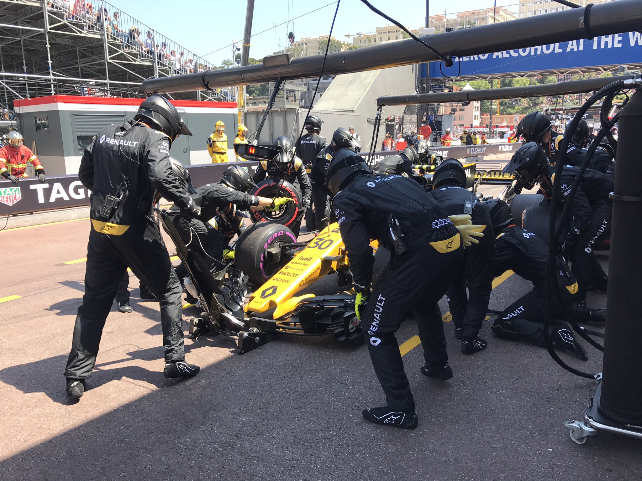 74-й круг: Стролл снова заезжает на пит-стоп. На этот раз его болид закатывают в гараж. Лэнс покидает гонку.