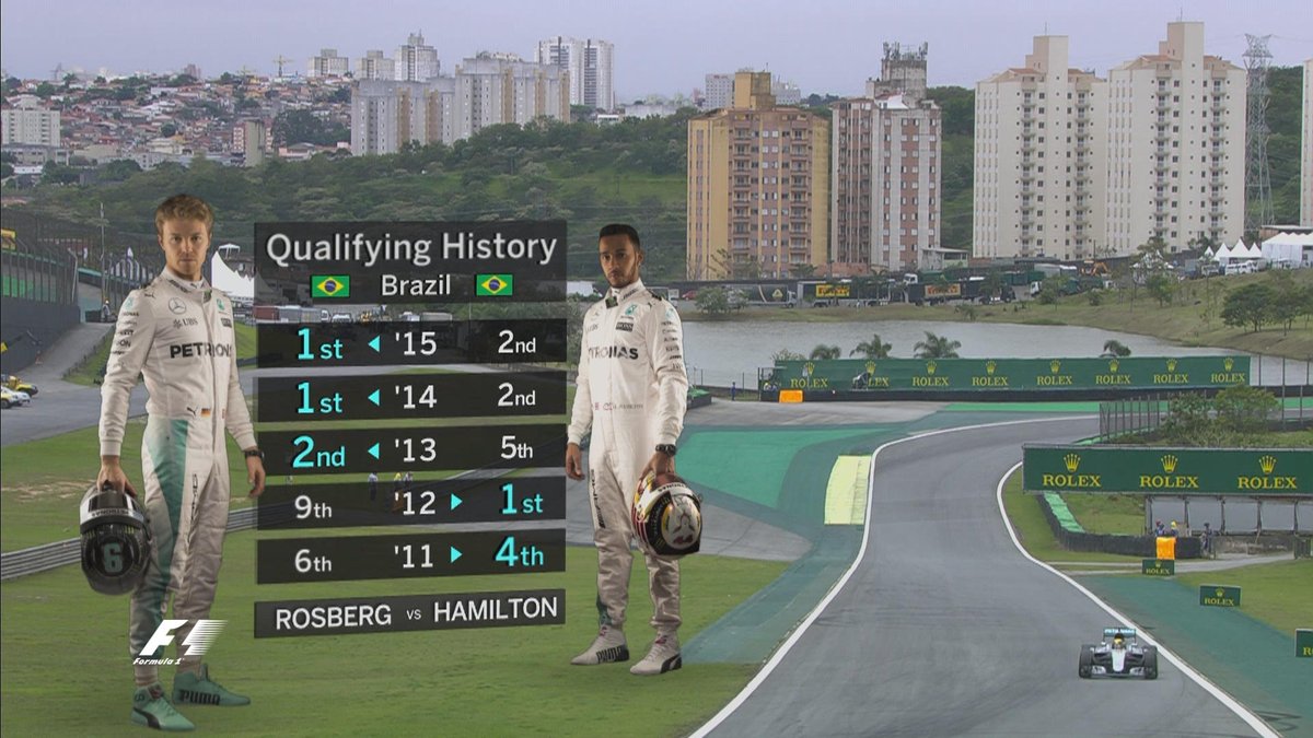 1.11,238 - Хжмилтон показывает лучшее время уик-энда. Уверенно он себя чувствует в Бразилии. Росберг проигрывает ему всего 0,135.