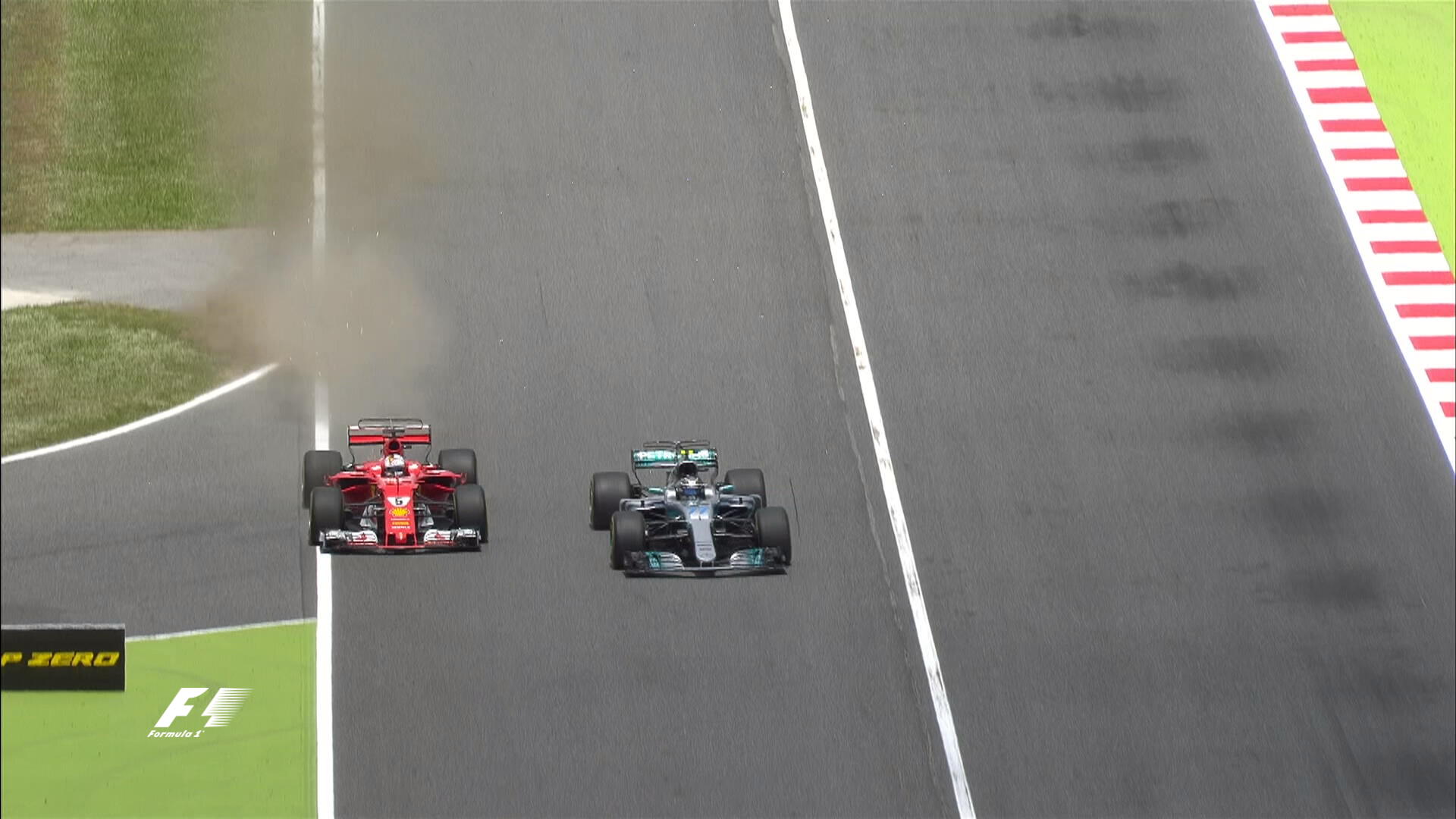 25-й круг: Боттас дотянул до конца круга, но в первом же повороте его обошел Феттель! Вальттери пытался закрыть внешний, а Себ прошел по внутреннему.