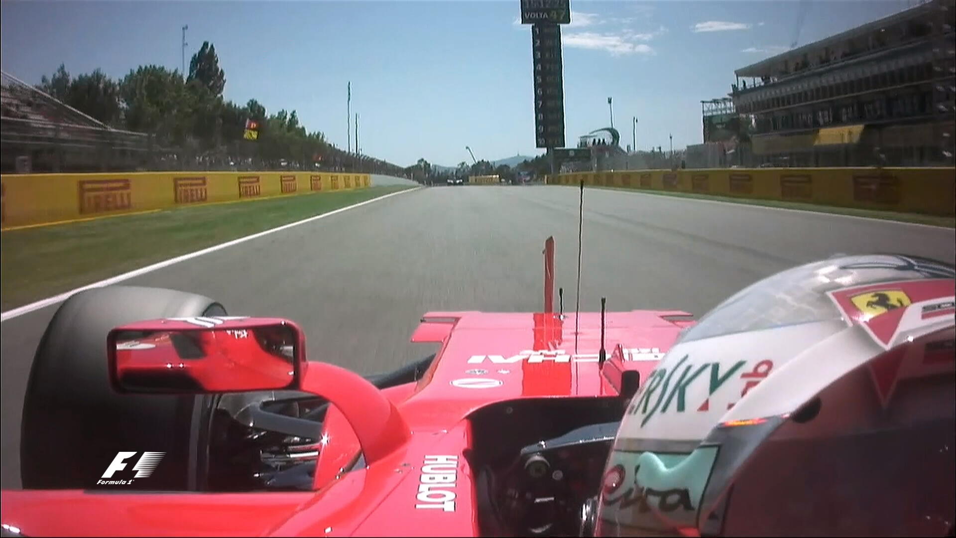 Феттель выезжает из боксов и тут же встречает Хэмилтона. Контакт между лидерами гонки, но Себ сохраняет первую позицию!