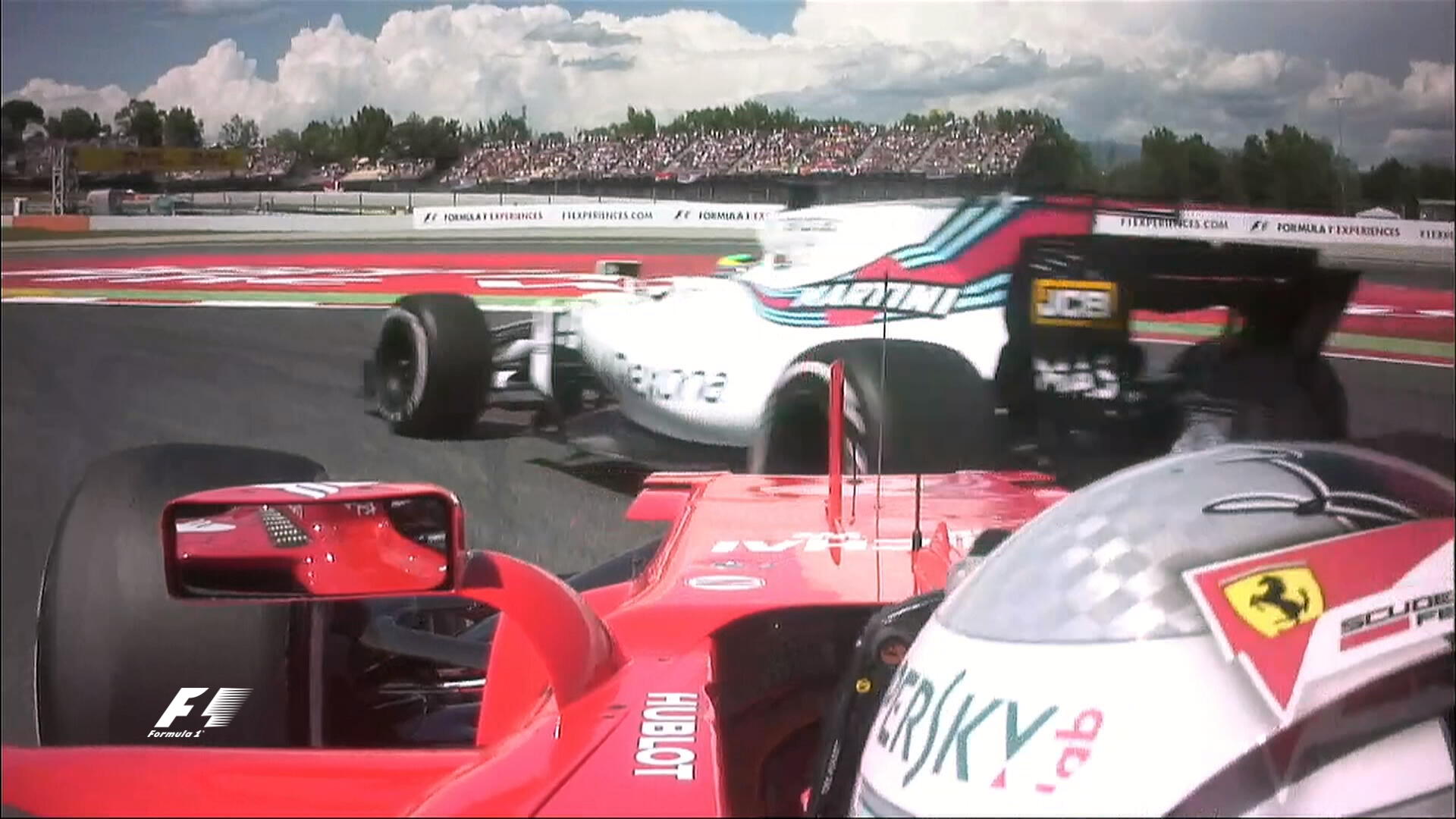 Феттель чуть не врезался в Массу. Здесь немец теряет драгоценную секунду.