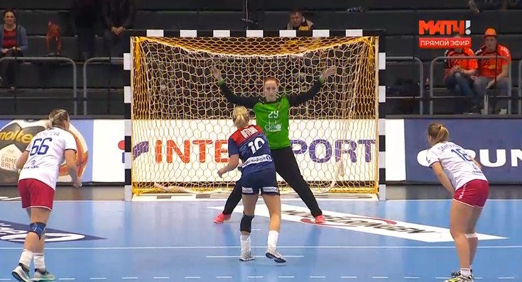 Ильина не слишком удачно бросила, попав в ноги вратарю, но мяч пролез-таки в ворота.