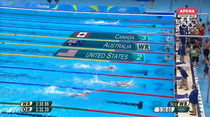 А теперь время женской эстафеты 4х100 м вольным стилем. Наши девушки в финал пробиться не смогли. Последний комплект медалей на сегодня.