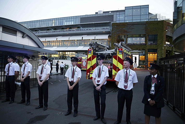 Как бывший советский студент, прошедший курс гражданской обороны, готов признать: судя по всему, процесс ликвидации подобных ЧП в тепличных условиях (то есть когда матчи не играются) на Уимблдоне налажен неплохо. Неизвестно, правда, как бы сработали службы безопасности, если бы пришлось бы выпроваживать со стадиона не несколько сотен, а десятков тысяч человек, но, как говорится, не дай Бог.
