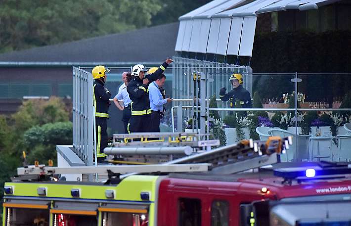 Уже поздно ночью стало известно, что действительно пострадало помещение с электрическим оборудованием около кухни на западной стороне Центрального корта. Там случилось короткое замыкание, и начался небольшой пожар. Последствия его успешно ликвидировала специально обученная бригада, и в четверг утром легендарная арена уже стояла как новенькая.