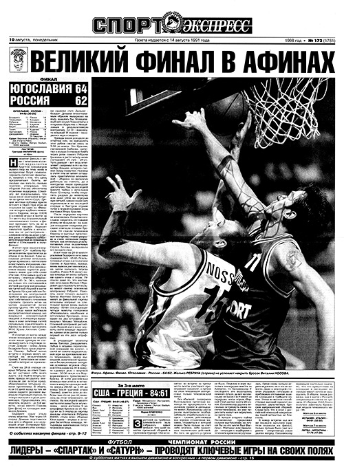 Евробаскет-99 сборная России проводит неудачно: в четвертьфинале уступает Италии – 79:102, а за 5-е место Литве – 72:103. Годом ранее на чемпионате мира и та, и другая были разгромлены. Да и в целом воспоминания о ЧМ-98 даже сейчас навевают ностальгию. Удивительный был турнир – и в исполнении российской команды, и вообще как таковой. Его главной сенсацией стала победа наших над американцами в полуфинале – 66:64…