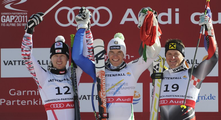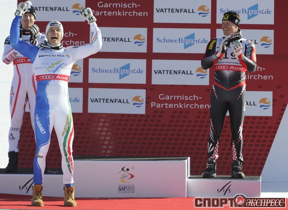 Горные лыжи. Гармиш-Партенкирхен (Германия). Чемпионат мира. Мужчины. Супергигант. Победителем стал итальянец Кристоф Иннерхофер, вторым спустился австриец Ханс Райхельт, третьим - хорват Ивица Костелич. Фото AFP.