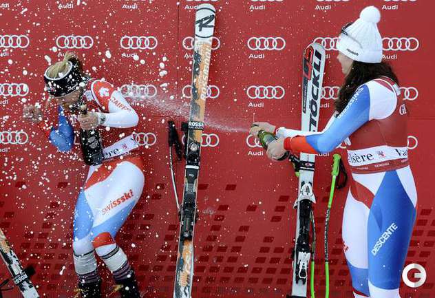 Горнолыжный спорт. Валь-д'Изер. Кубок мира. Женщины. Скоростной спуск. 1. Гут (Швейцария) - 1.19,75. 2. Смит (США) - 1.19,91. 3. Камер (Швейцария) - 1.20,25. 4. Маршан-Арвье (Франция) - 1.20,27. 5. Феннингер (Австрия) - 1.20,42. 6. Ауфденблаттен (Швейцария) - 1.19,47. Фото AFP и REUTERS