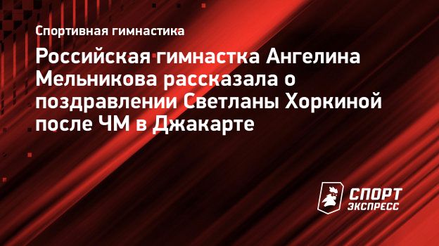 Российская гимнастка Ангелина Мельникова рассказала, как двукратная олимпийская чемпионка Светлана Хоркина поздравила ее с выступлением на чемпионате мира в Джакарте.