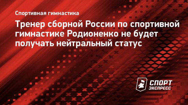 Тренер сборной России по спортивной гимнастике Родионенко не будет получать нейтральный статус