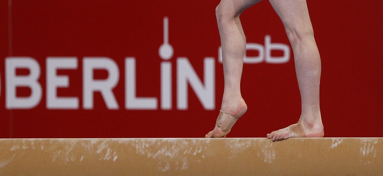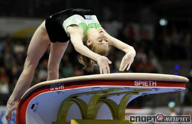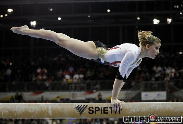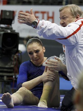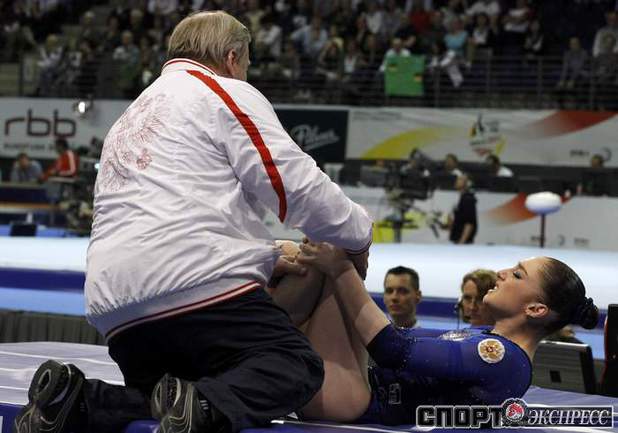 Берлин. Чемпионат Европы. Женщины. Многоборье. Финал. Лидер женской сборной России Алия Мустафина повредила ногу в первом же виде финальных соревнований. Фото REUTERS