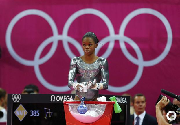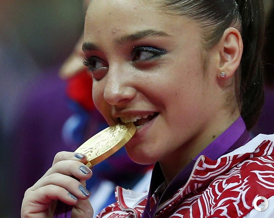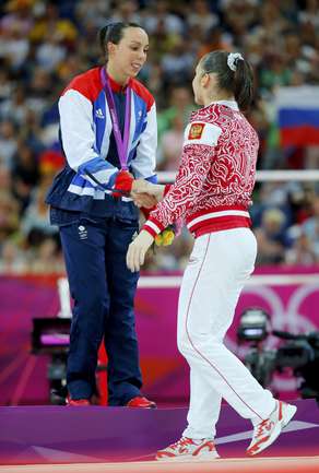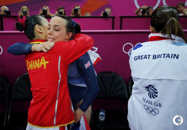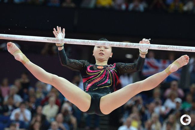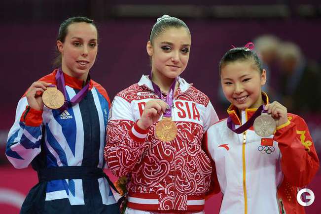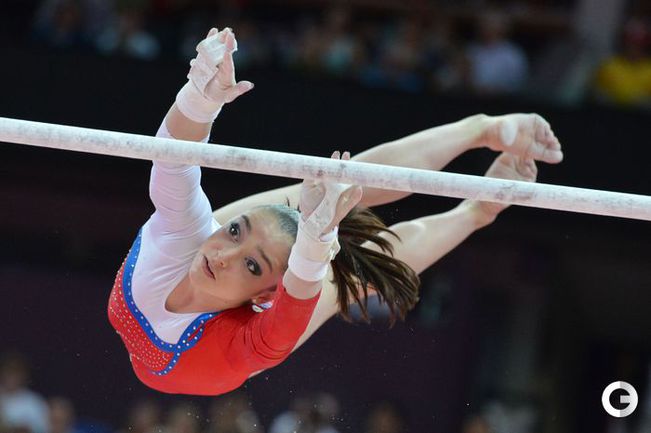 Спортивная гимнастика. Лондон. Олимпийские игры. Женщины. Брусья. 1. МУСТАФИНА (Россия) - 16,133. 2. Хэ Кэсинь (Китай) - 15,933. 3. Тведдл (Великобритания) - 15,916. Фото AFP и REUTERS