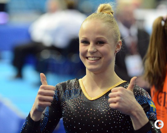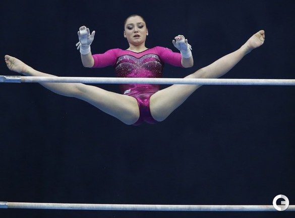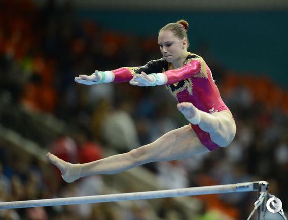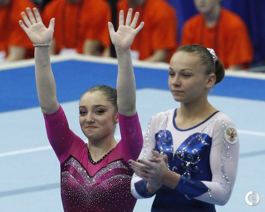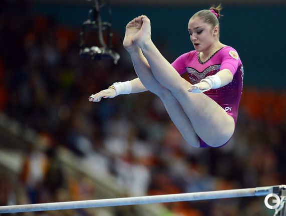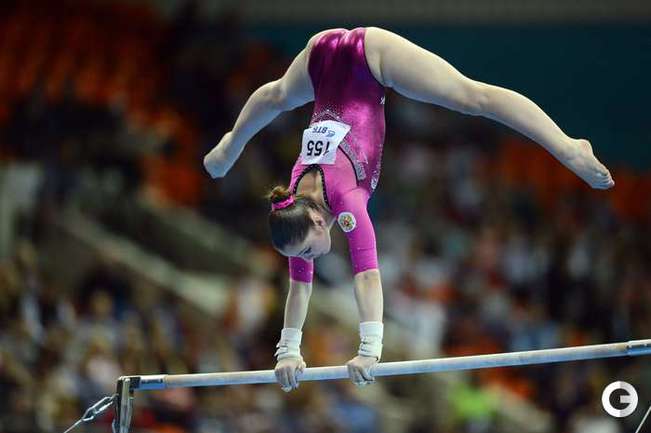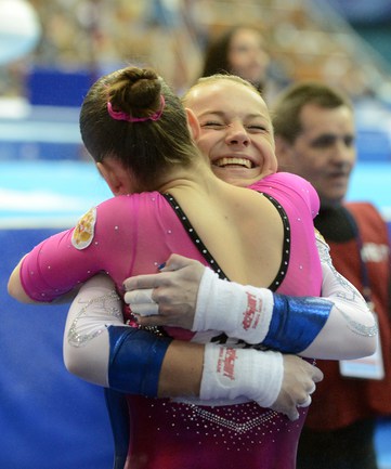 Москва. Чемпионат Европы. Женщины. Брусья. 1. МУСТАФИНА (Россия) – 15,300 балла. 2. Адлертег (Швеция) – 14,633. 3. ПАСЕКА (Россия) – 14,400. Фото AFP, REUTERS