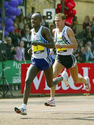 Действующий олимпийский чемпион и чемпион мира эфиоп Гезагне Абера стал победителем лондонского марафона. На финише он спринтерским рывком смог опередить Стефано Бальдини из Италии. Оба показали время 2 часа 7 минут 56 секунд. Сразу вслед за ними финишировали кенийцы Джозеф Нголепус (2:07.57) и Пол Тергат (2:07:59). Внешне развязка забега больше напоминала стометровку, чем марафон. |