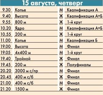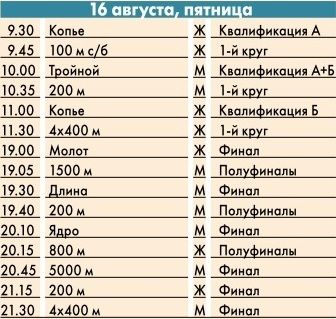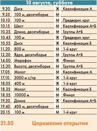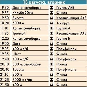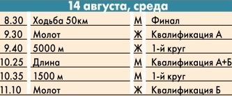 Чемпионат мира по легкой атлетике-2013 в Москве: расписание