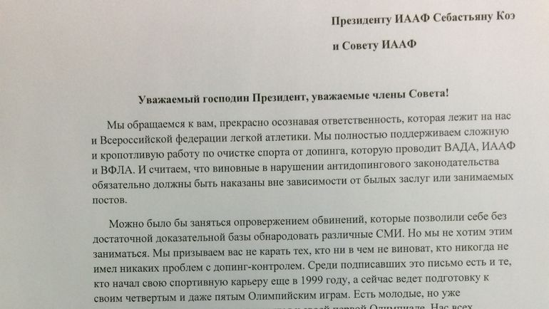 Российские легкоатлеты подписали коллективное письмо президенту ИААФ