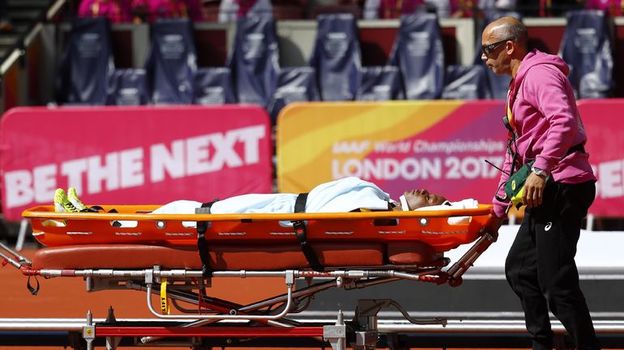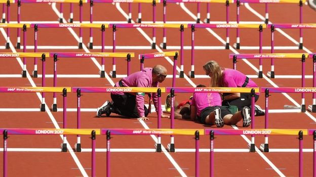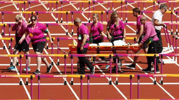 Бегунья Дебора Джон из Тринидада и Тобаго получила серьезную травму во время квалификационного забега на 100 метров с барьерами на чемпионате мира в Лондоне.