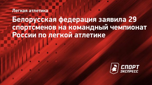 Белорусская федерация легкой атлетики (БФЛА) подала предварительную заявку на участие 29 своих спортсменов в командном чемпионате России, сообщает ТАСС.