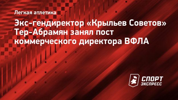 Бывший генеральный директор «Крыльев Советов» Роберт Тер-Абрамян объявил, что занял пост коммерческого директора Всероссийской федерации легкой атлетики (ВФЛА).