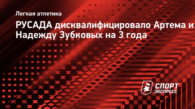 Российское антидопинговое агентство (РУСАДА) дисквалифицировало легкоатлетов Артема и Надежду Зубковых на три года.