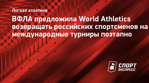 Генеральный секретарь Всероссийской федерации легкой атлетики (ВФЛА) Александр Джорджадзе рассказал, что организация предложила Международной ассоциации легкоатлетических федераций (World Athletics) проводить работу по поэтапному возвращению российских спортсменов на международные турниры.