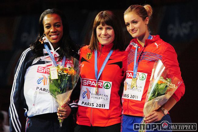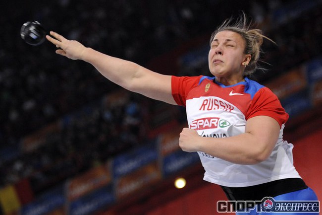 Париж. Чемпионат Европы в помещении. Мужчины. Прыжок в высоту. 1.Ухов (Россия) – 2,38, 2.Баба (Чехия) – 2,34, 3.Шустов (Россия) – 2,34. Толкание ядра - 1. Анна Авдеева (Россия) – 18,70 Фото AFP