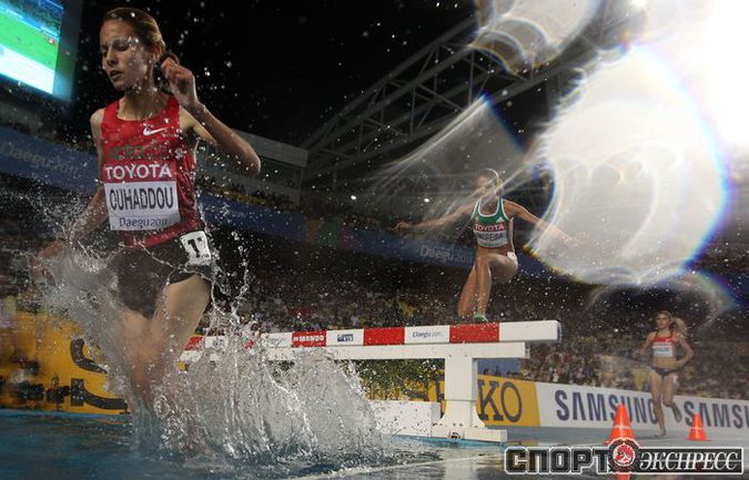 Легкая атлетика. Тэгу. Чемпионат мира. Женщины. 3000 м, с/п. 1. Зарипова (Россия) – 9.07,03 (лучший результат сезона в мире). 2. Гриби (Тунис) – 9.11,97. 3. Чейва (Кения) – 9.17,16…11. Харламова (Россия) – 9.44,14; Шест. 1. Мурер (Бразилия) – 4,85. 2. Штрутц (Германия) – 4,80. 3. Феофанова (Россия) – 4,75...6. Исинбаева(Россия) - 4,65. Фото AFP и REUTERS