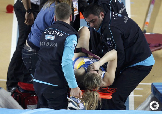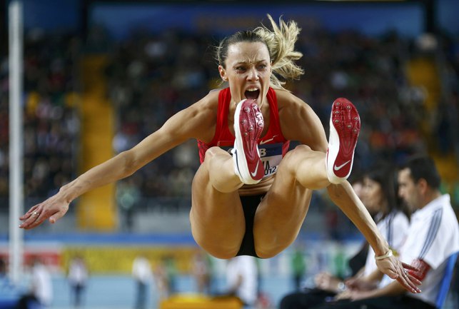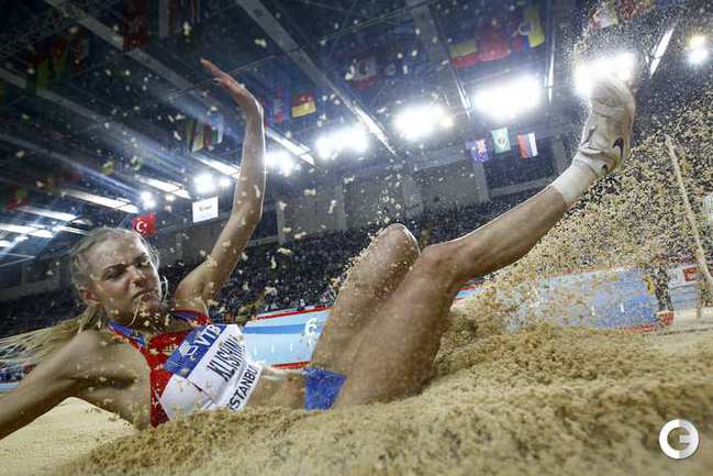 Легкая атлетика. Стамбул (Турция). Фоторепортаж REUTERS с завершающего дня чемпионат мира в помещении. В секторе для прыжков с шестом двукратная олимпийская чемпионка Елена Исинбаева, не побеждавшая на крупнейших мировых стартах со времен триумфа на Играх-2008 в Пекине, завоевала золотую медаль.