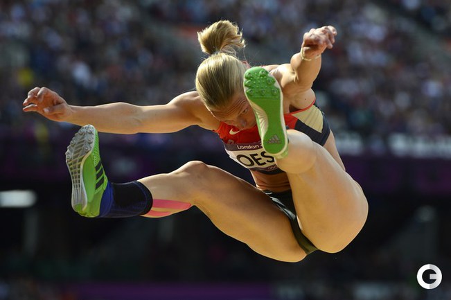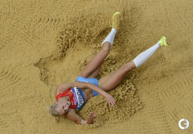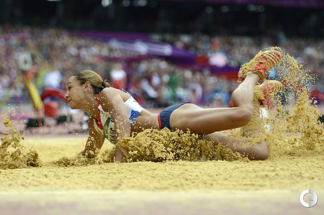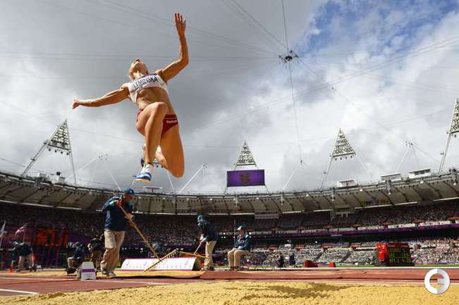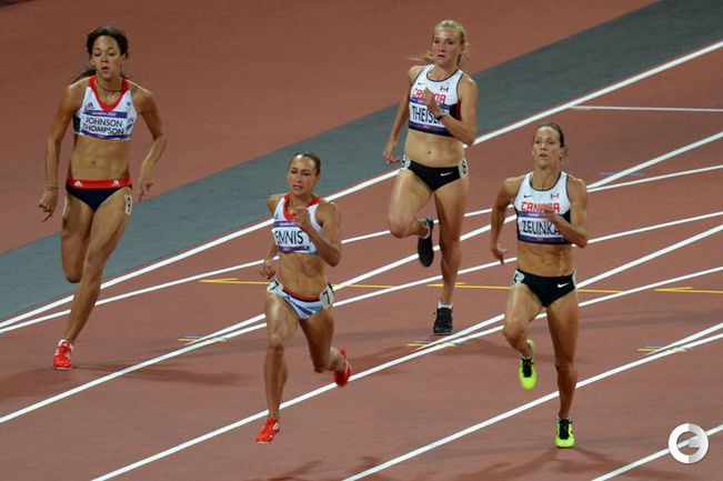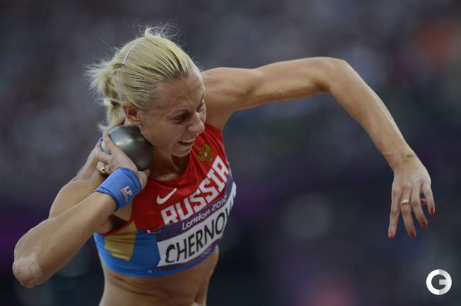 Легкая атлетика. Лондон. Олимпийские игры. Женщины. Семиборье. Общий зачет. 1. Эннис (Великобритания) - 6628. 2. ЧЕРНОВА (Россия) - 6618. 7. САВИЦКАЯ (Россия) - 6462. 19. КУРБАН (Россия) - 6084. Фото AFP