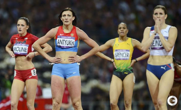 Легкая атлетика. Лондон. Олимпийские игры. Женщины. Длина. 1. Риз (США) - 7,12. 2. СОКОЛОВА (Россия) - 7,07. 3. Делоч (США) - 6,89. 4. Радевица (Латвия) - 6,88. 5. НАЗАРОВА (Россия) - 6,77. 6. КОЛЧАНОВА (Россия) - 6,76. 400 м с/б. 1. АНТЮХ (Россия) - 52,70. 2. Димас (США) - 52,77. 3. Хейнова (Чехия) - 53,38. 4. К. Спенсер (Ямайка) - 53,66. 5. Молин (США) - 53,92. 6. Браун (США) - 55,07. 7. Росолова (Чехия) - 55,27. 8. Одумосу (Нигерия) - 55,31. Фото AFP и REUTERS