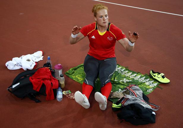 Легкая атлетика. Лондон. Олимпийские игры. Женщины. Молот. 1. ЛЫСЕНКО (Россия) – 78,18 (олимпийский рекорд). 2. Влодарчик (Польша) – 77,60. 3. Чжан Вэньсю (Китай) – 76,34. 4. Клаес (Бельгия) - 76,05. 5. Морено (Куба) - 74,60. 6. Менькова (Белоруссия) - 74,40. 7. Маргиева (Молдавия) – 74,06. 8. Хайдлер (Германия) – 73,90. 11. БЕСПАЛОВА (Россия) - 71,13. Фото REUTERS