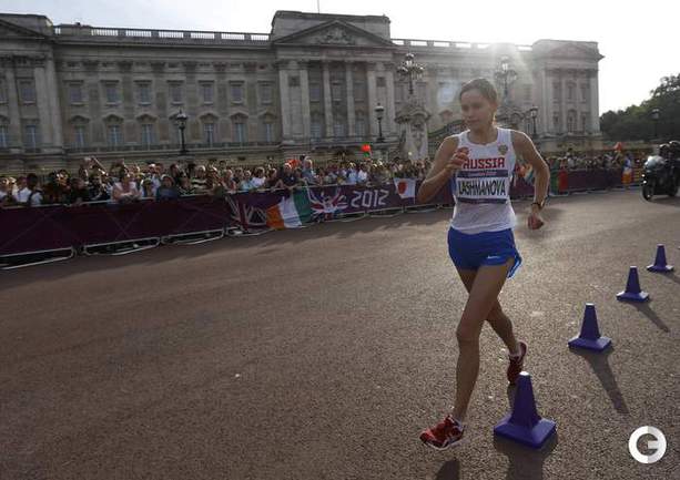 Легкая атлетика. Лондон. Олимпийские игры. Женщины. Ходьба 20 км. 1. ЛАШМАНОВА (Россия) - 1:25.02 (мировой рекорд). 2. КАНИСЬКИНА (Россия) - 1:25.09. 3. Цеян Шэньцзе (Китай) - 1:25.16. 4. Лю Хун (Китай) - 1:26.00 5. КИРДЯПКИНА (Россия) - 1:26.26. 6. Лу Сюйчжи (Китай) - 1:27.10. Фото AFP и REUTERS